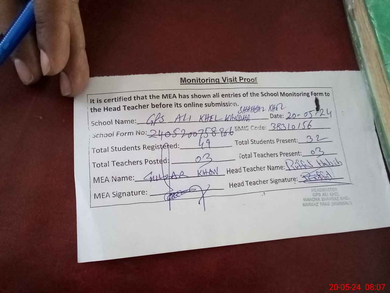 | EMIS Code: 38310156 | Name of School: GPS ALI KHEL WANDHA SHAHBAZ KHEL | |||
