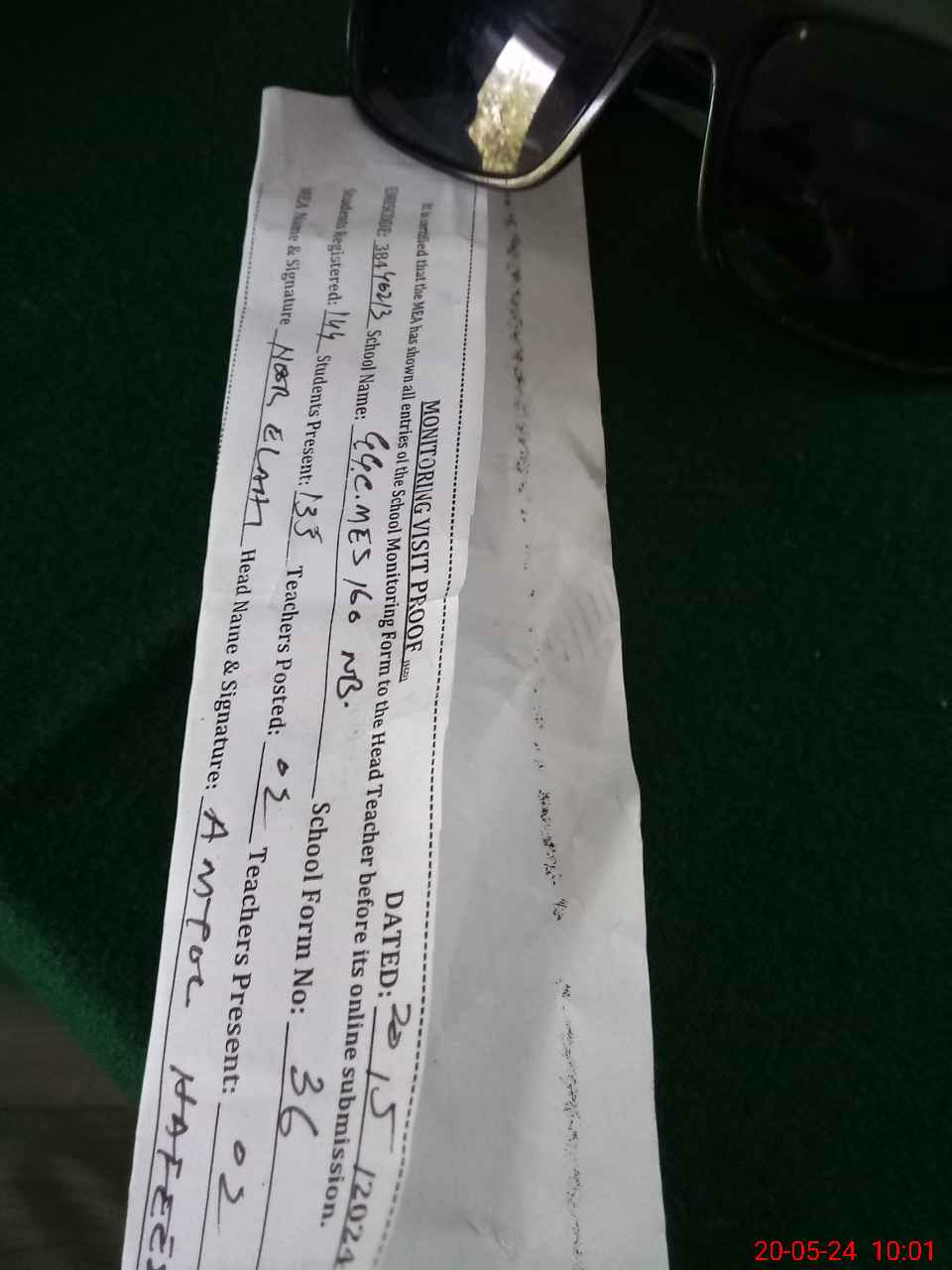 | Certified that this School was Inspected by the Undersigned MEA/DMO Today and the Information Stated Above is as Per Record. | |||||