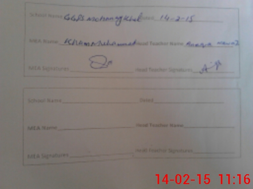 | Attendance Register | Head Teacher | MEA with School | Visit Proof |