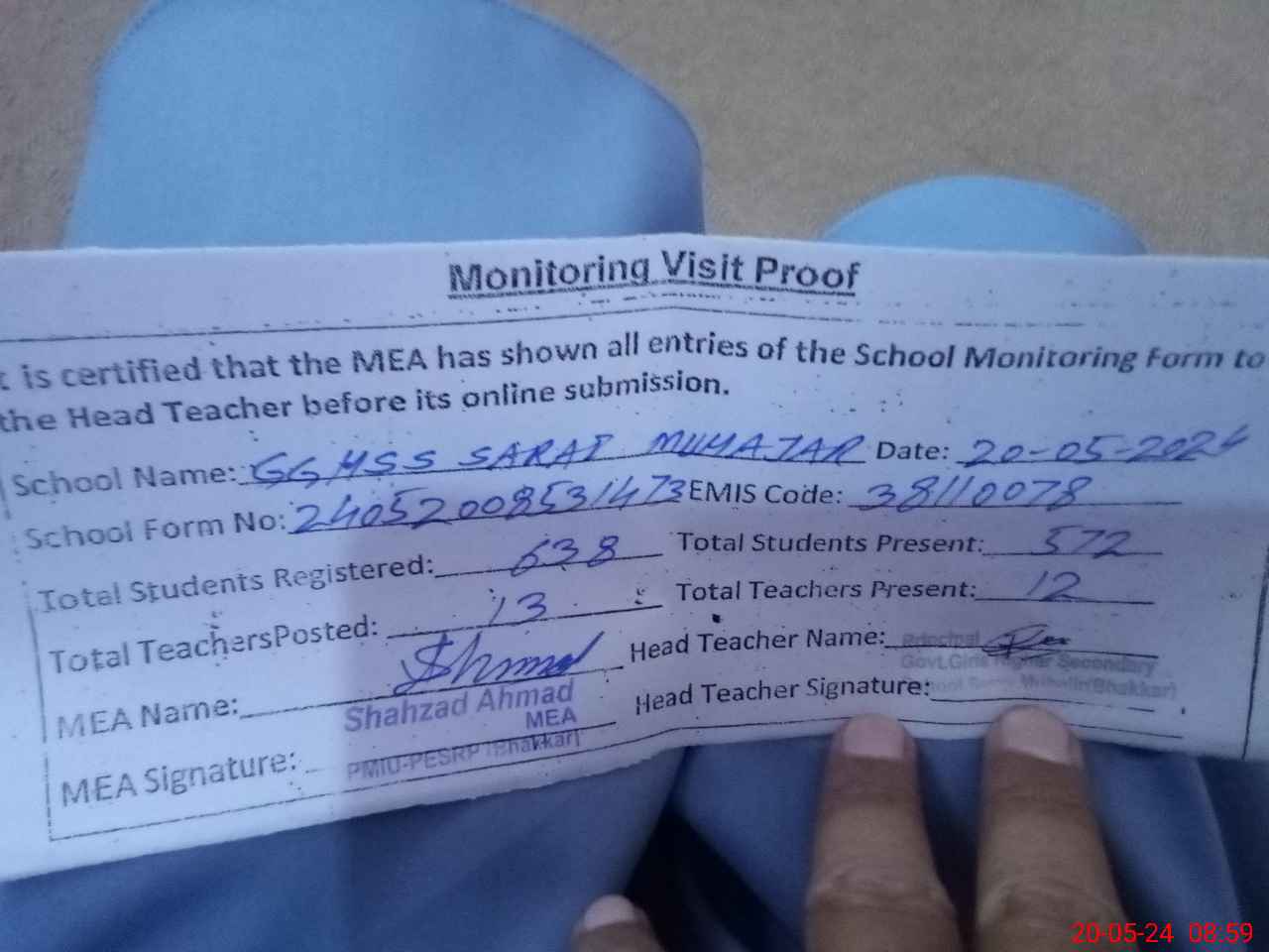 | EMIS Code: 38110078 | Name of School: GGHSS SARAI MUHAJAR | |||