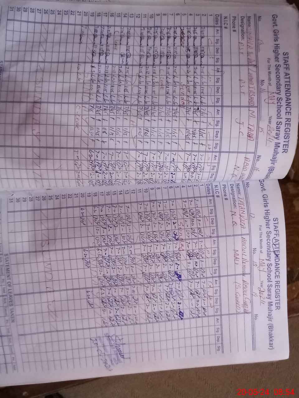 | Remarks (Use Separate Page if Required): EST Yasmeen Gul leave applied at 0742 hrs and head teacher approved at 0743 hrs after the start time of visit Moreover NQ M Talha is absent as no application has been available only written on leave in register | |||||