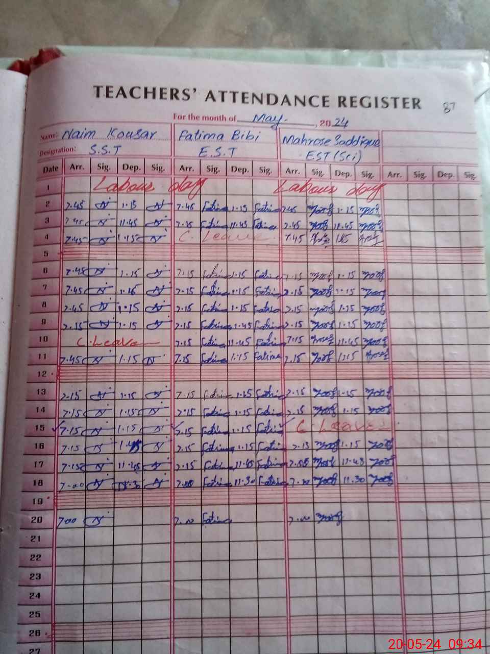 | CNIC | Full Name | Designation | R/C | Absence During Last Calender Month |