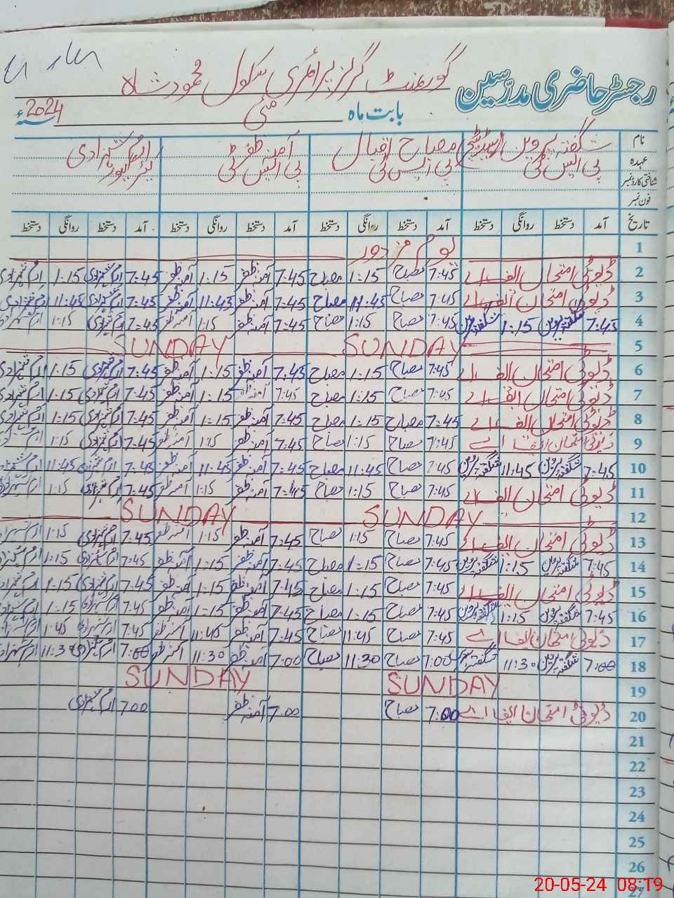 | Name: SH**** PA**** Designation: (School Headmaster's/Headmistress's) PST Phone/Cell Number: 03**** |