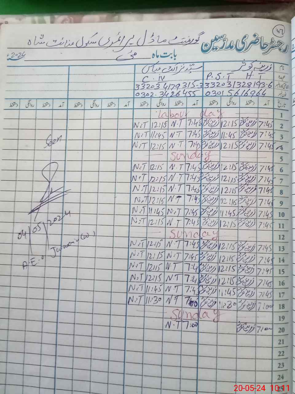 | Remarks (Use Separate Page if Required): PST teacher Atiya Farhat has been dismissed from service vide Order No 2396 dated 27 April 2023 | |||||