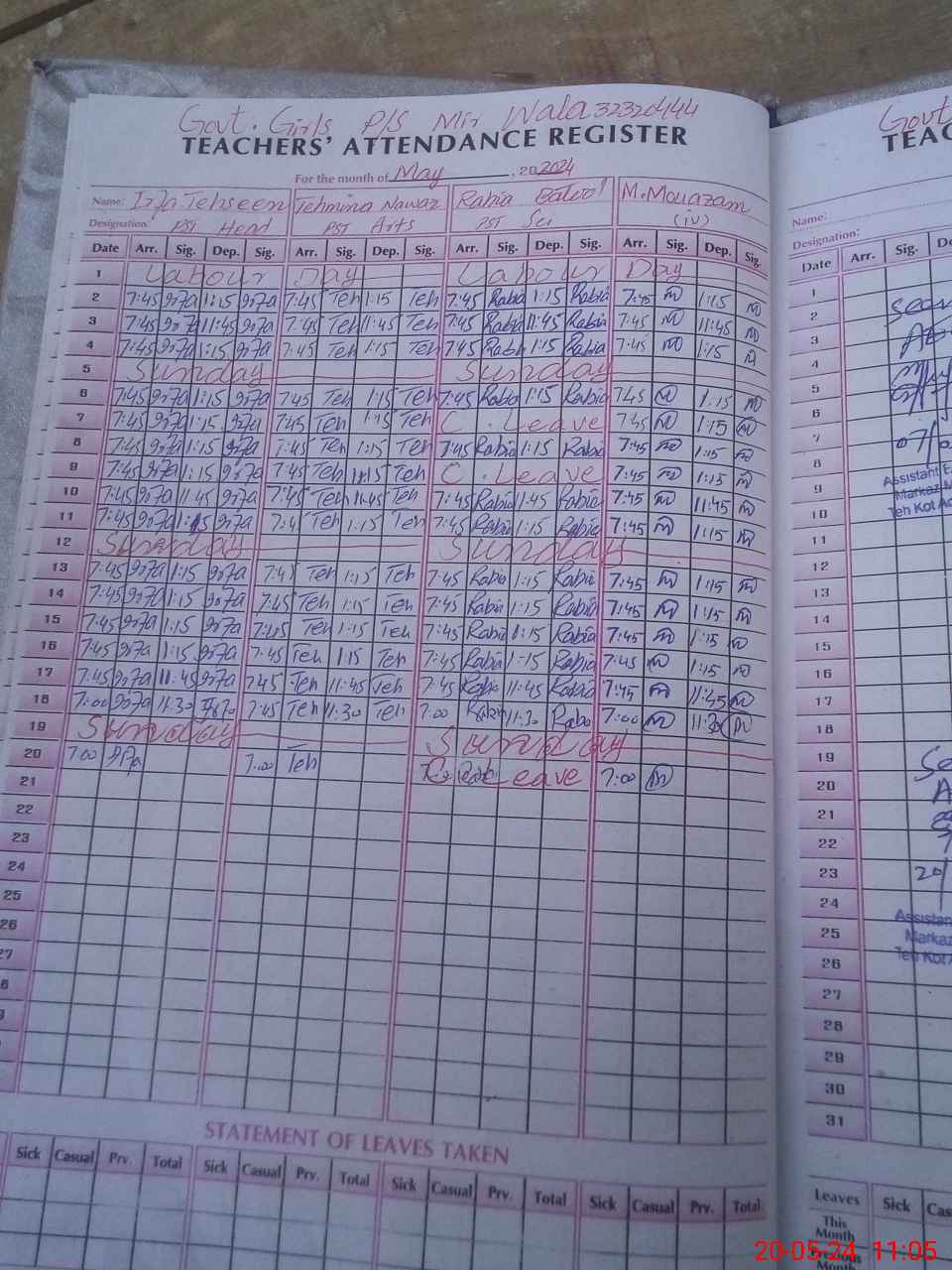 | Leave | Duty | Absent | Maternity | Medical | Ex- Pak |