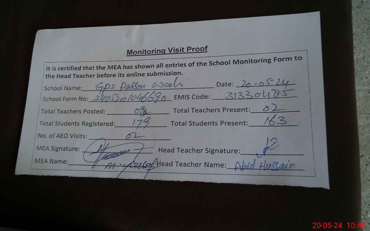 | EMIS Code: 31330485 | Name of School: GPS PASSON WALI | |||