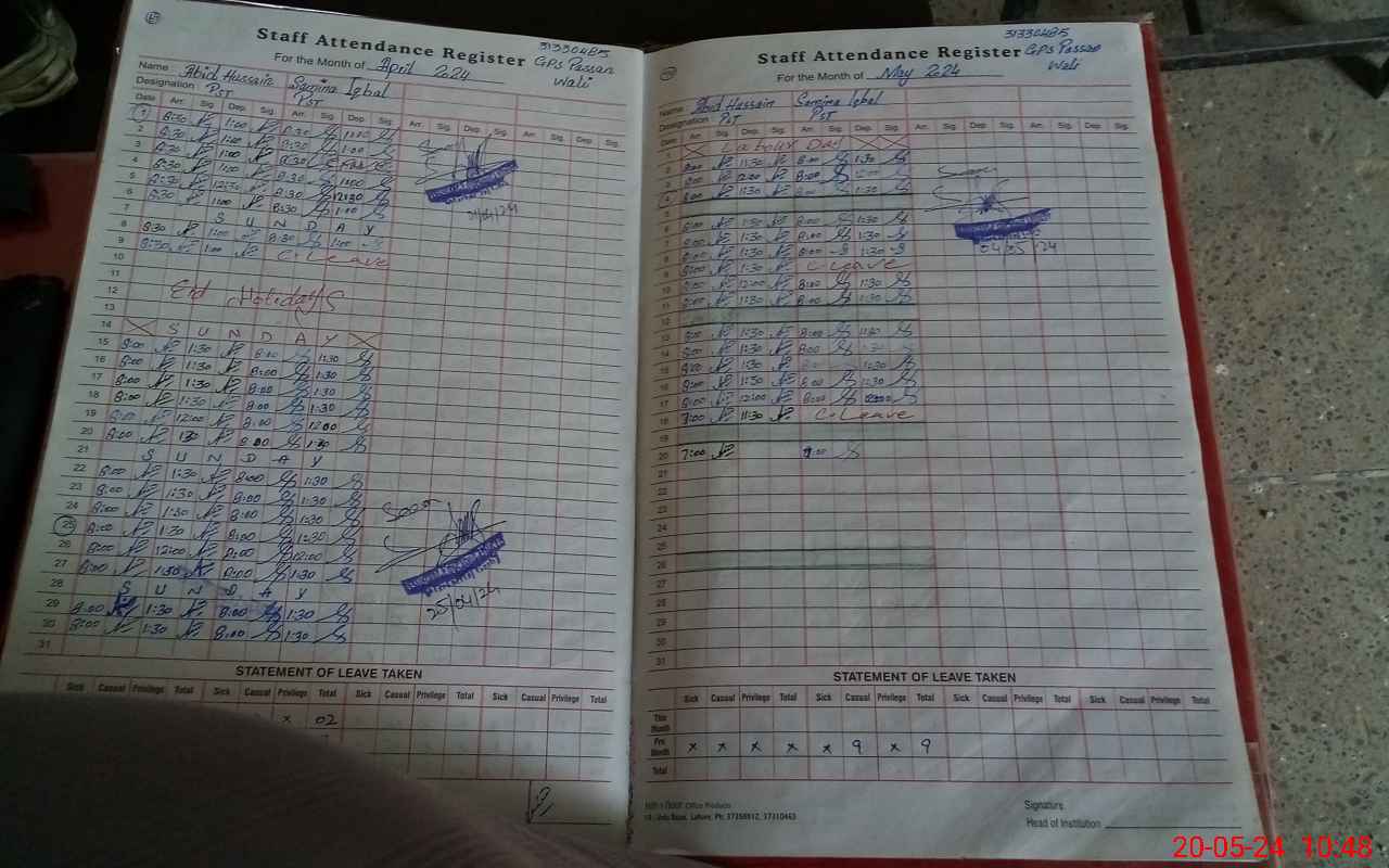 | CNIC | Full Name | Designation | R/C | Absence During Last Calender Month |