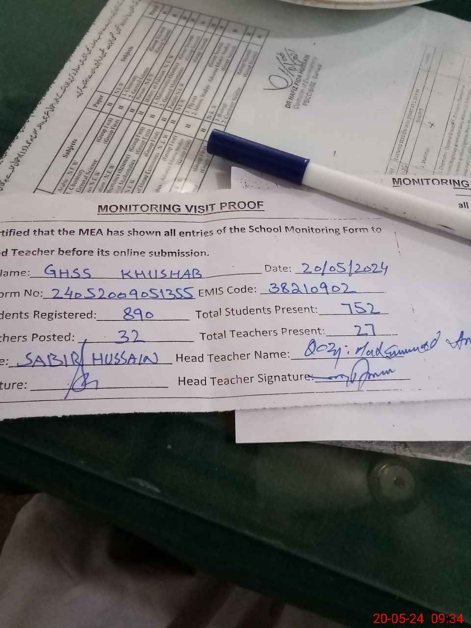 | Attendance Register | Head Teacher | MEA with School | Visit Proof |