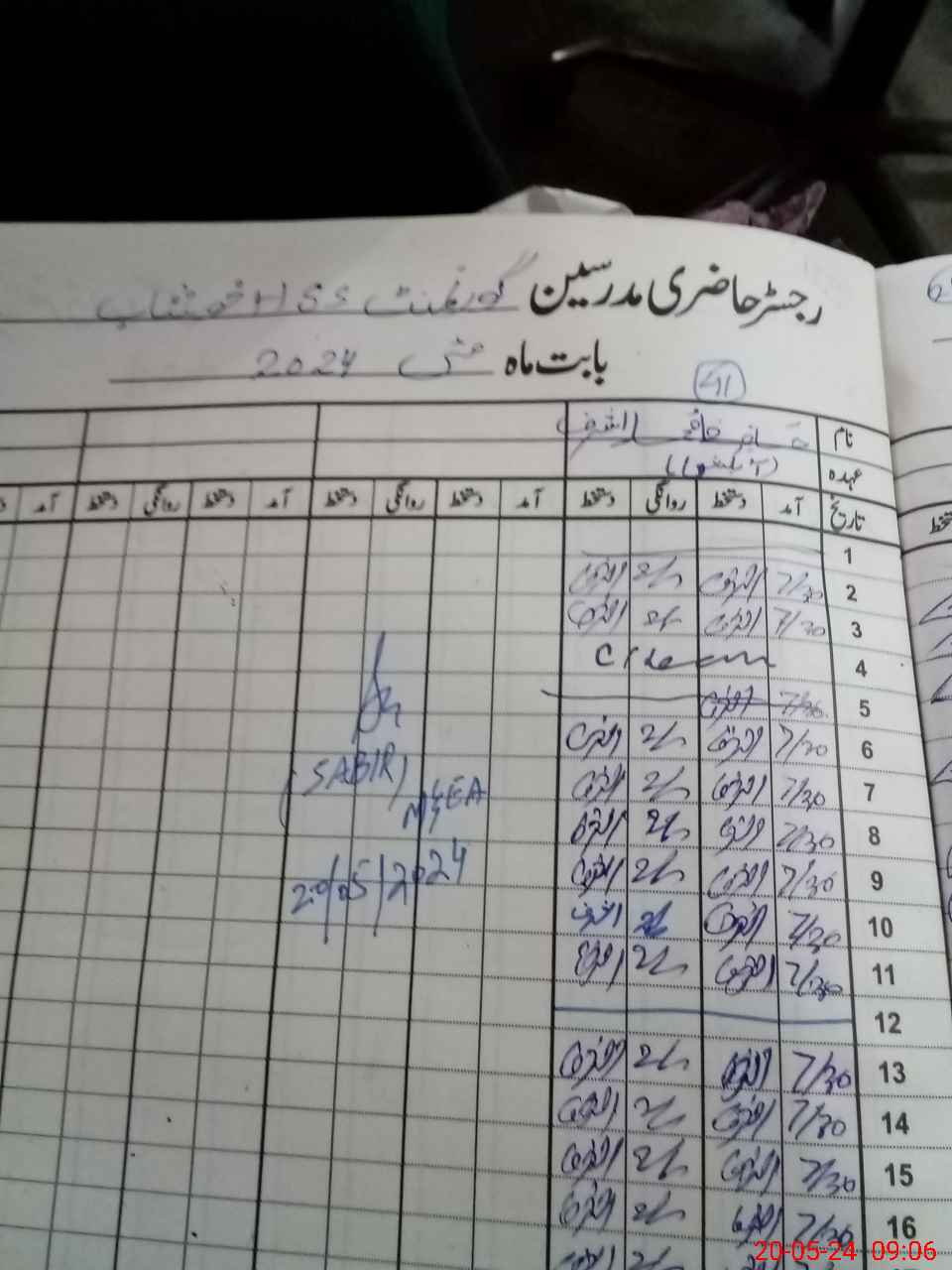 | CNIC | Full Name | Designation | R/C | Absence During Last Calender Month |