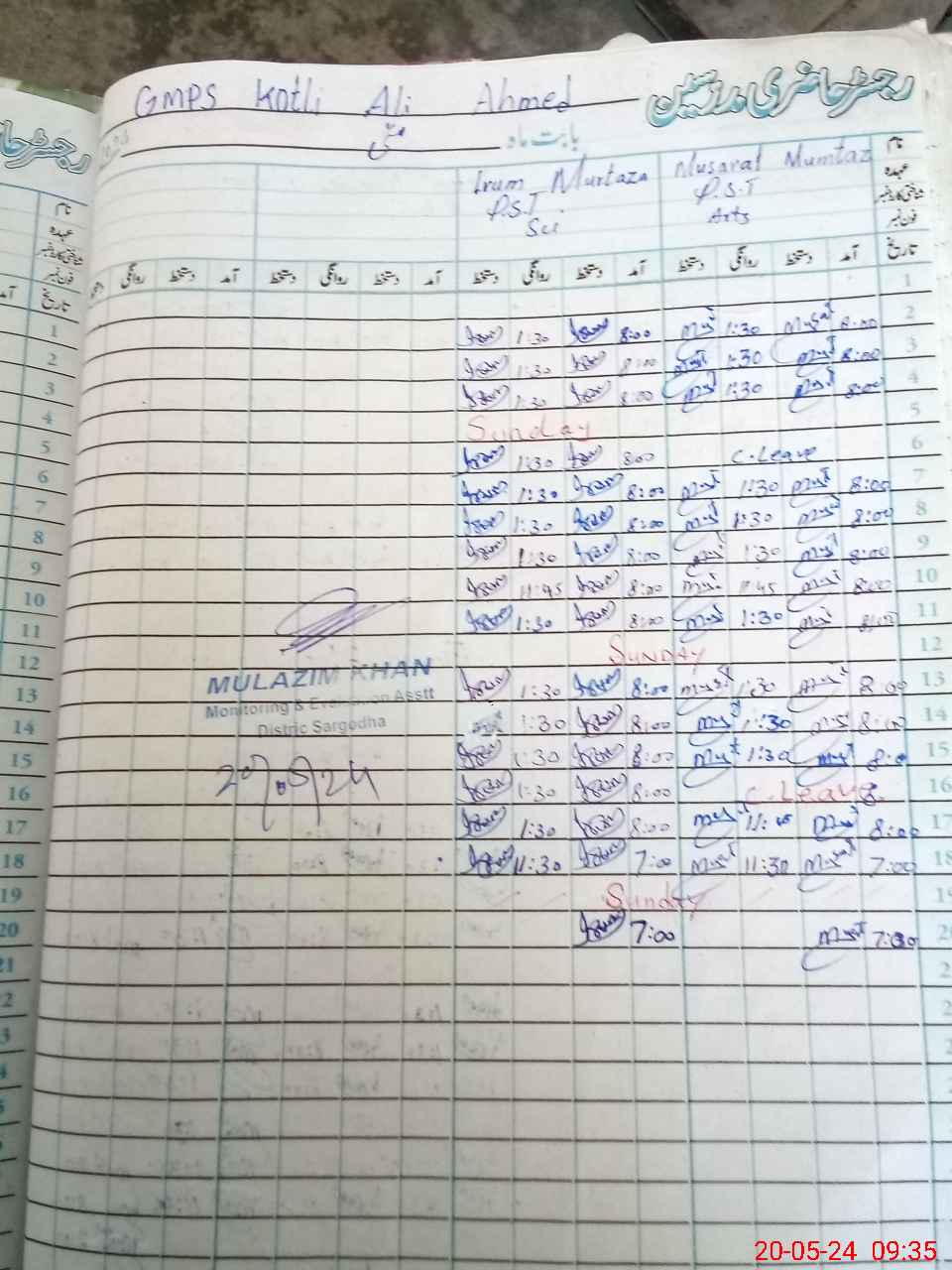 | Name: MU**** MU**** Designation: (School Headmaster's/Headmistress's) PST Phone/Cell Number: 03**** |