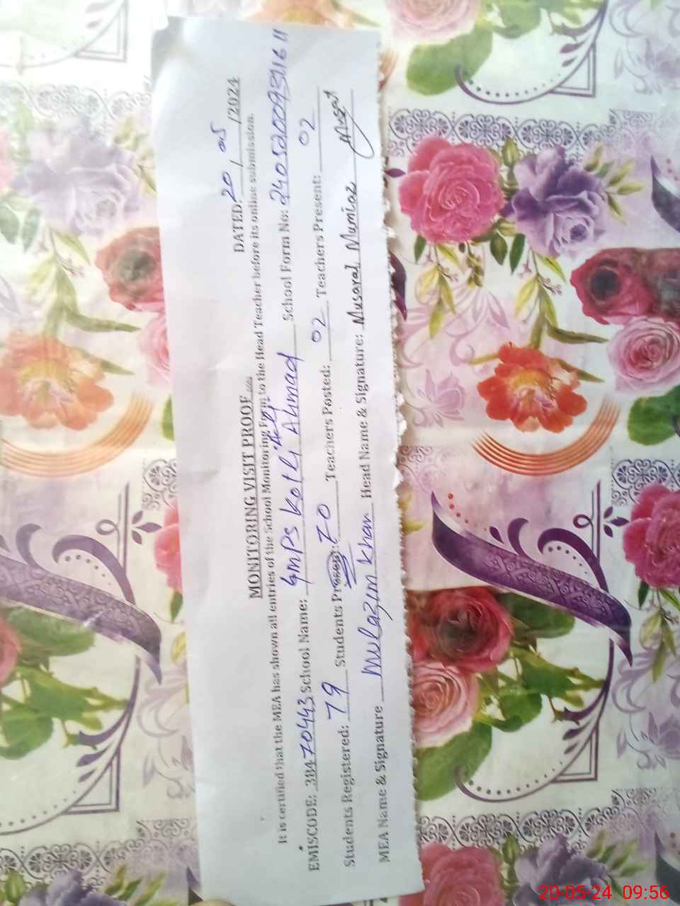 | Attendance Register | Head Teacher | MEA with School | Visit Proof |