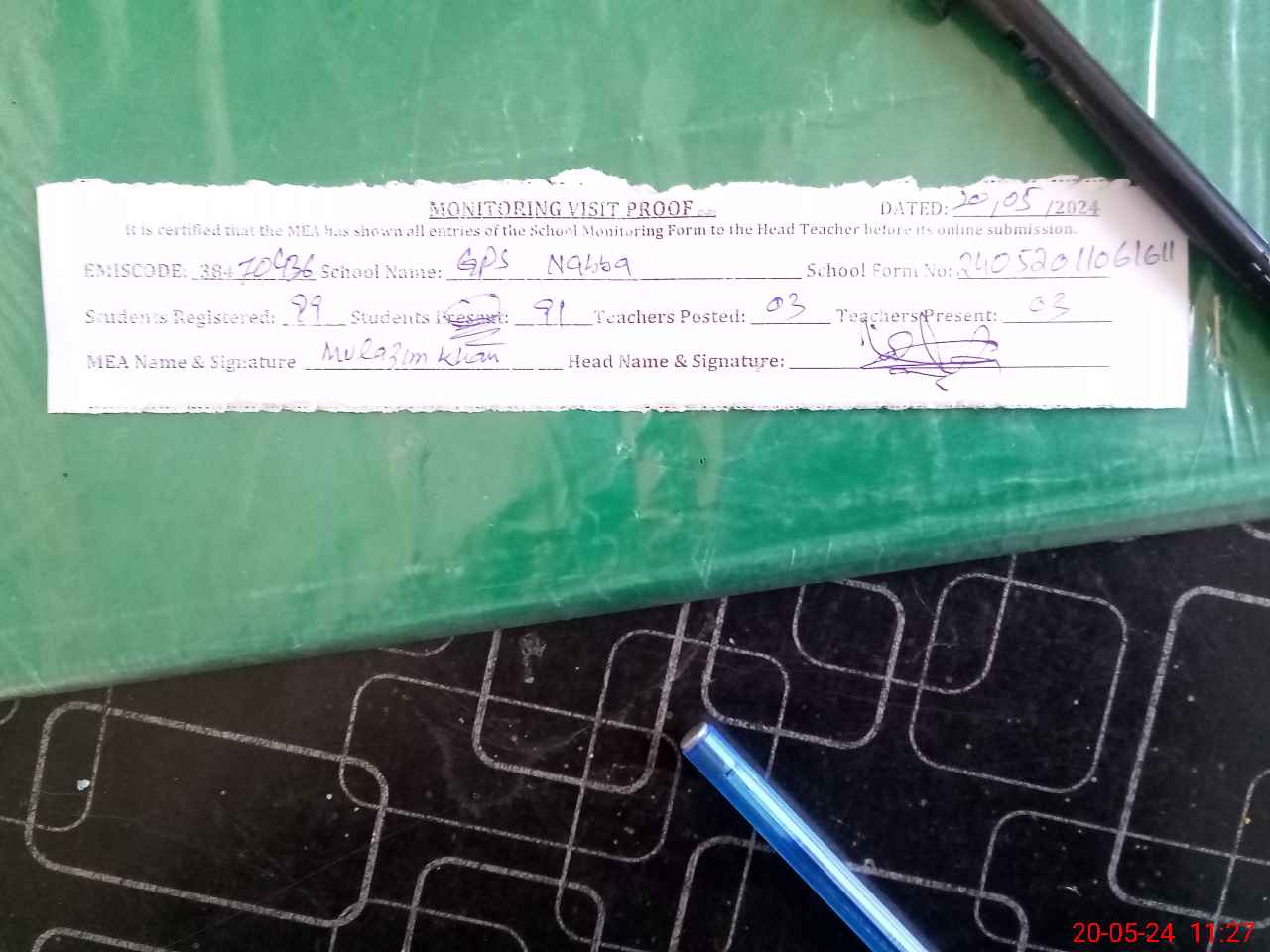 | Attendance Register | Head Teacher | MEA with School | Visit Proof |