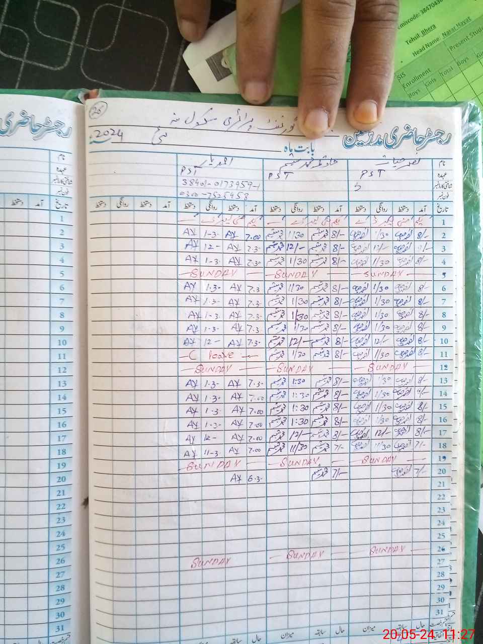 | Name: NA**** HA**** Designation: (School Headmaster's/Headmistress's) PST Phone/Cell Number: 03**** |