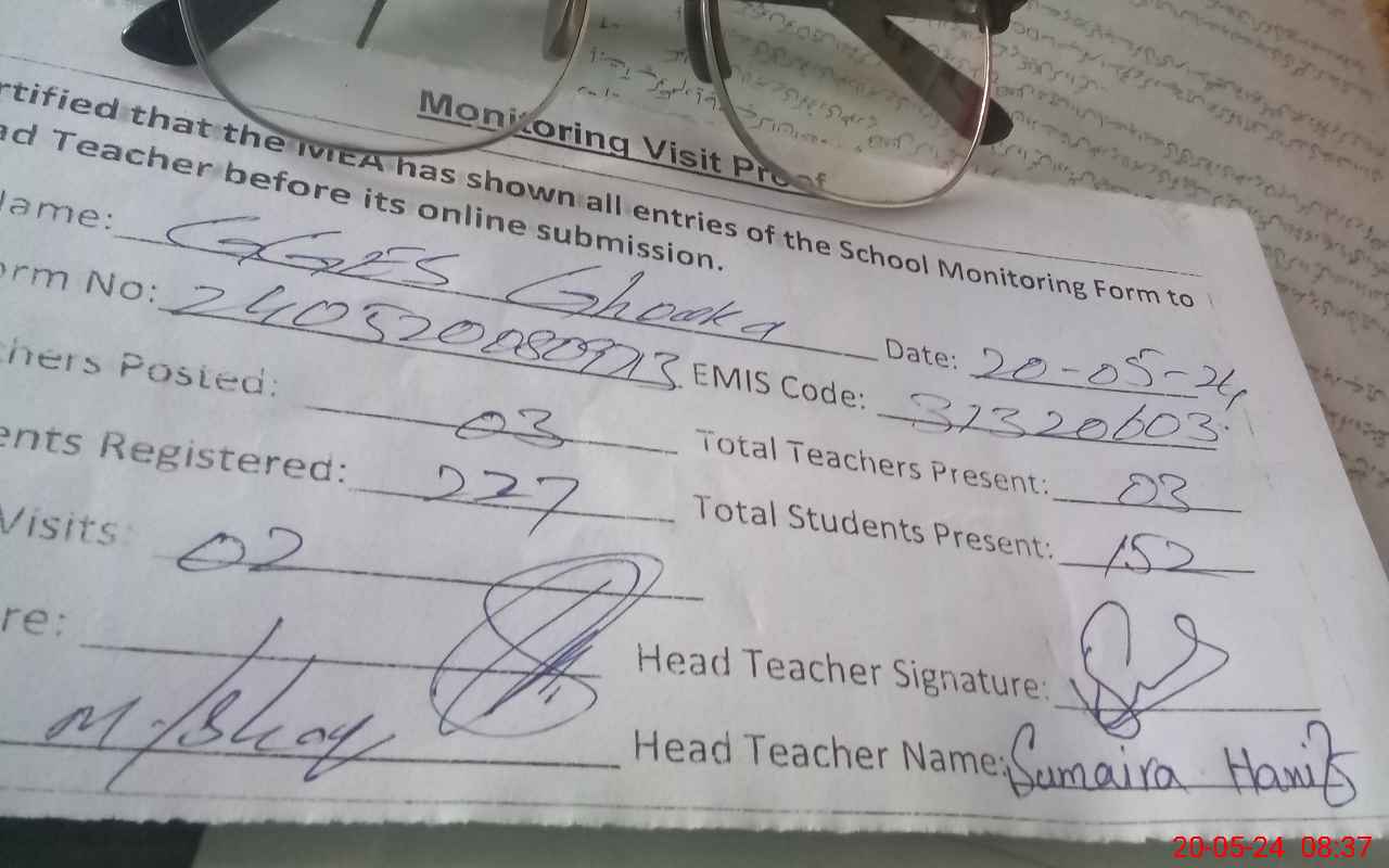 | Attendance Register | Head Teacher | MEA with School | Visit Proof |