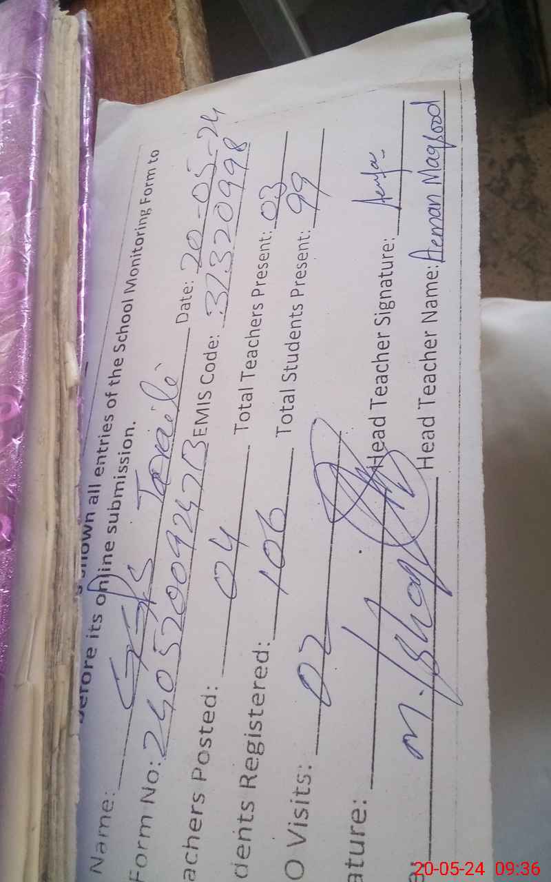 | Attendance Register | Head Teacher | MEA with School | Visit Proof |