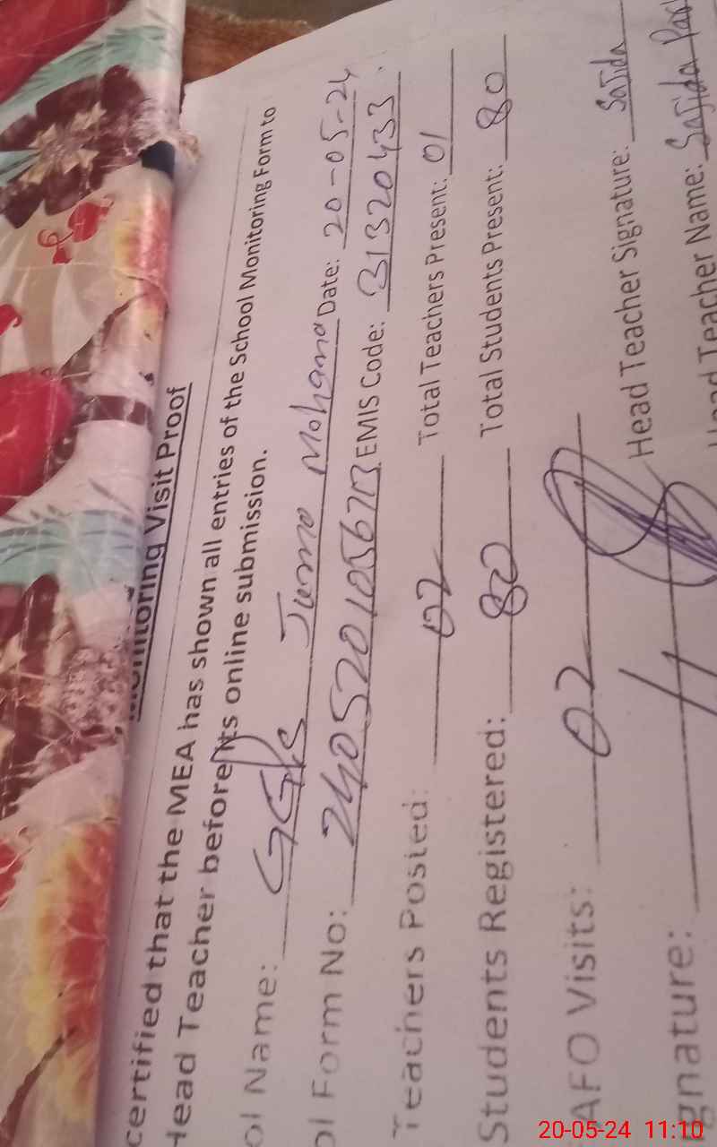 | EMIS Code: 31320433 | Name of School: GGPS JUMA MOHANA | |||
