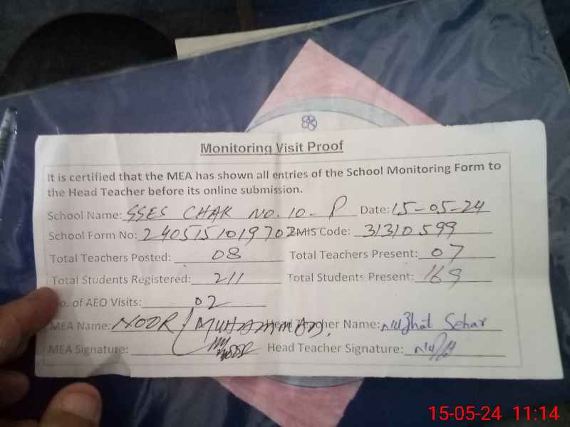 | Attendance Register | Head Teacher | MEA with School | Visit Proof |