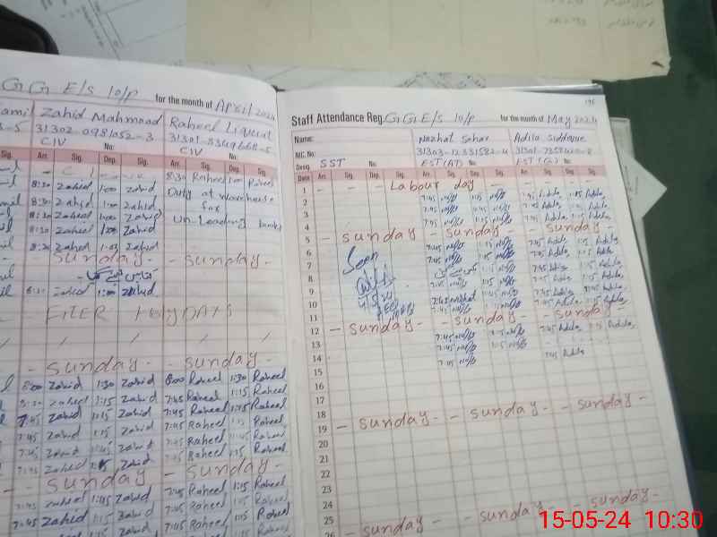 | CNIC | Full Name | Designation | R/C | Absence During Last Calender Month |