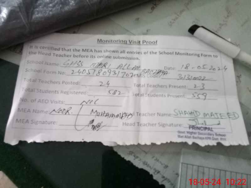 | EMIS Code: 31310022 | Name of School: GHSS MARI ALLAH BACHAYA | |||