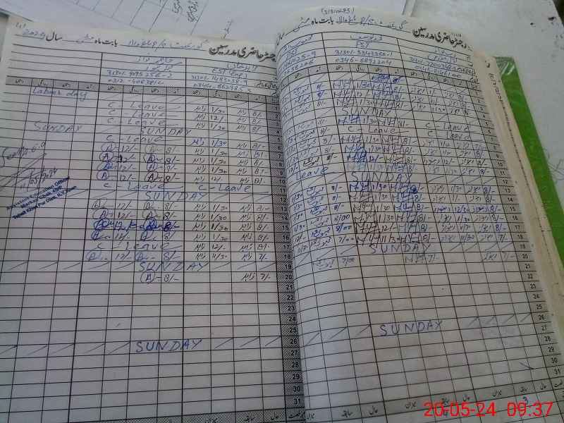 | CNIC | Full Name | Designation | R/C | Absence During Last Calender Month |