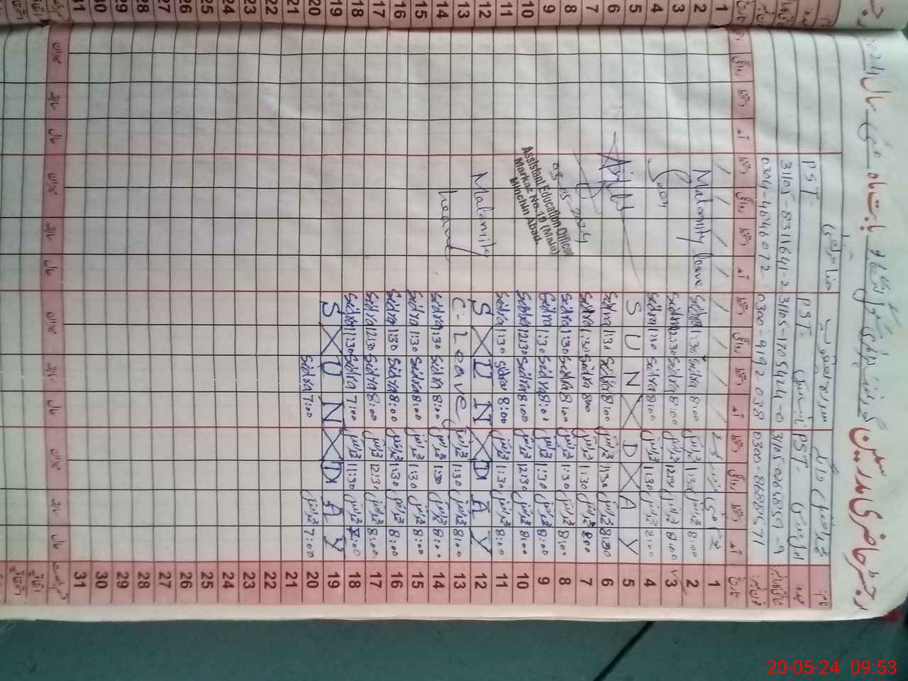 | 31**** | Hi**** Mu**** | Contract | 30 | 0 | 0 | 30 | 0 | 0 | 0 | 0 | 0 | Maternity | |