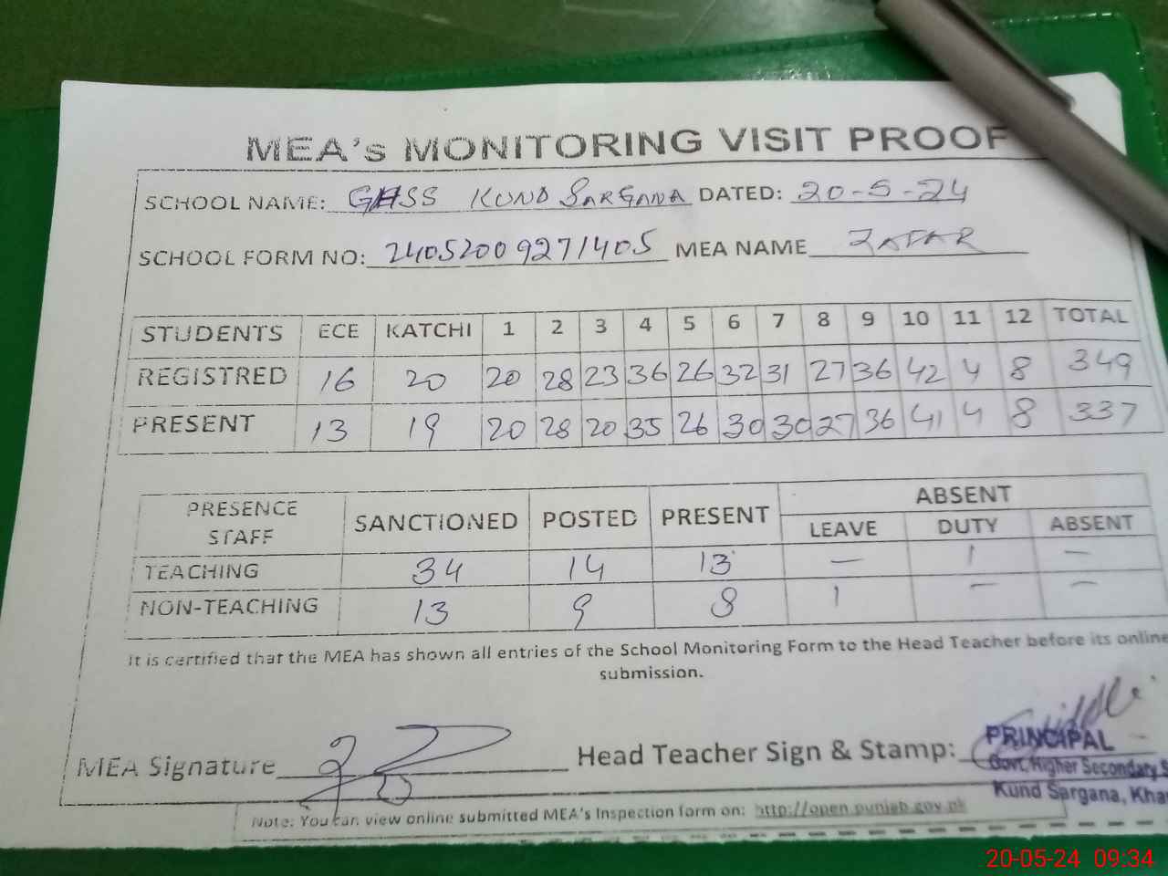 | EMIS Code: 36410228 | Name of School: GHSS KUND SARGANA, SARAI SIDHU | |||