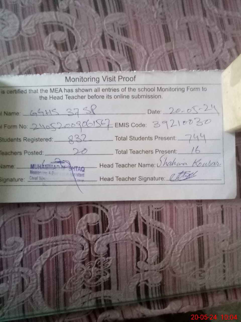 | EMIS Code: 39210030 | Name of School: GGHS 37 SP PAKPATTAN | |||