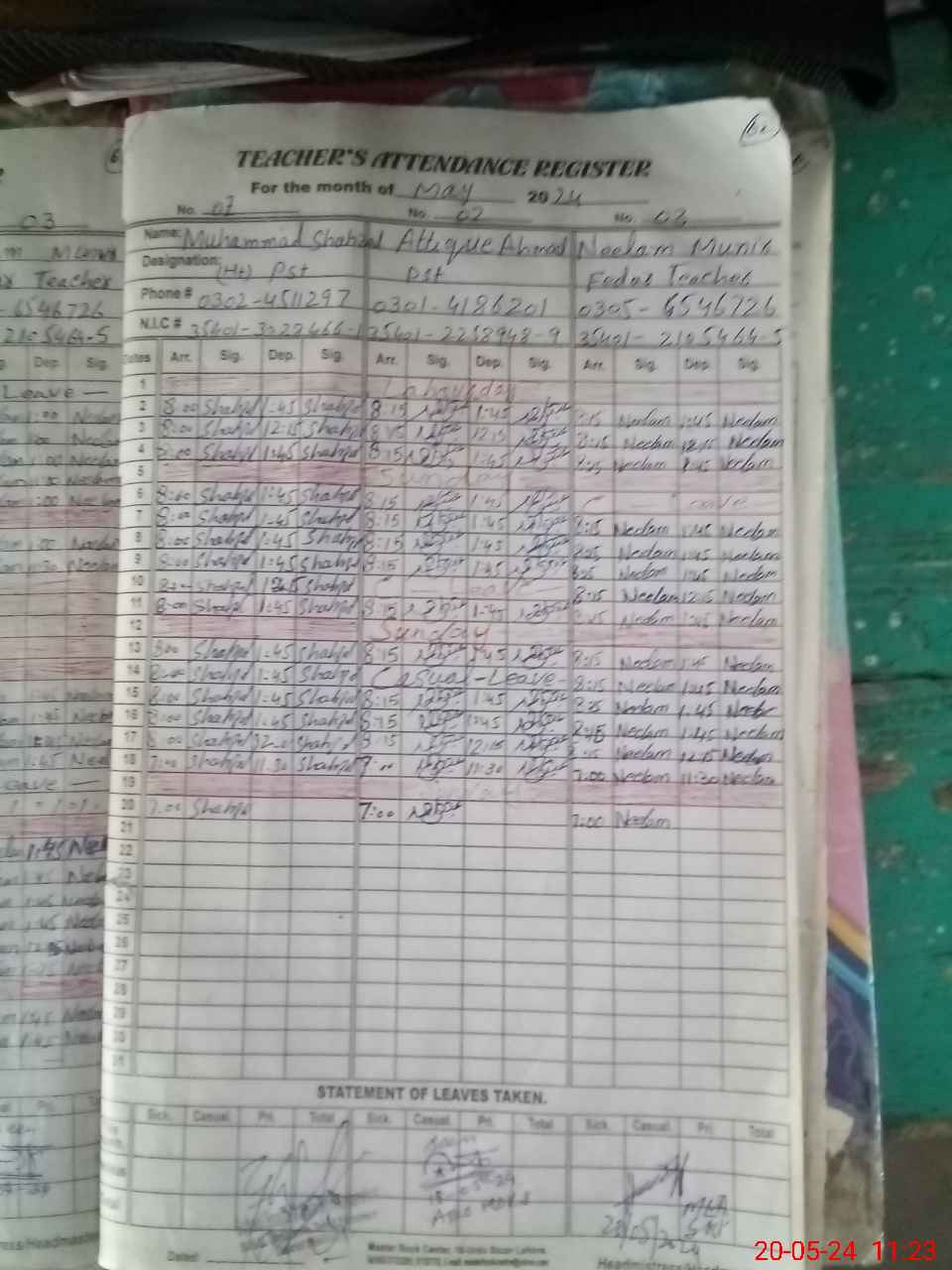 | CNIC | Full Name | Designation | R/C | Absence During Last Calender Month |
