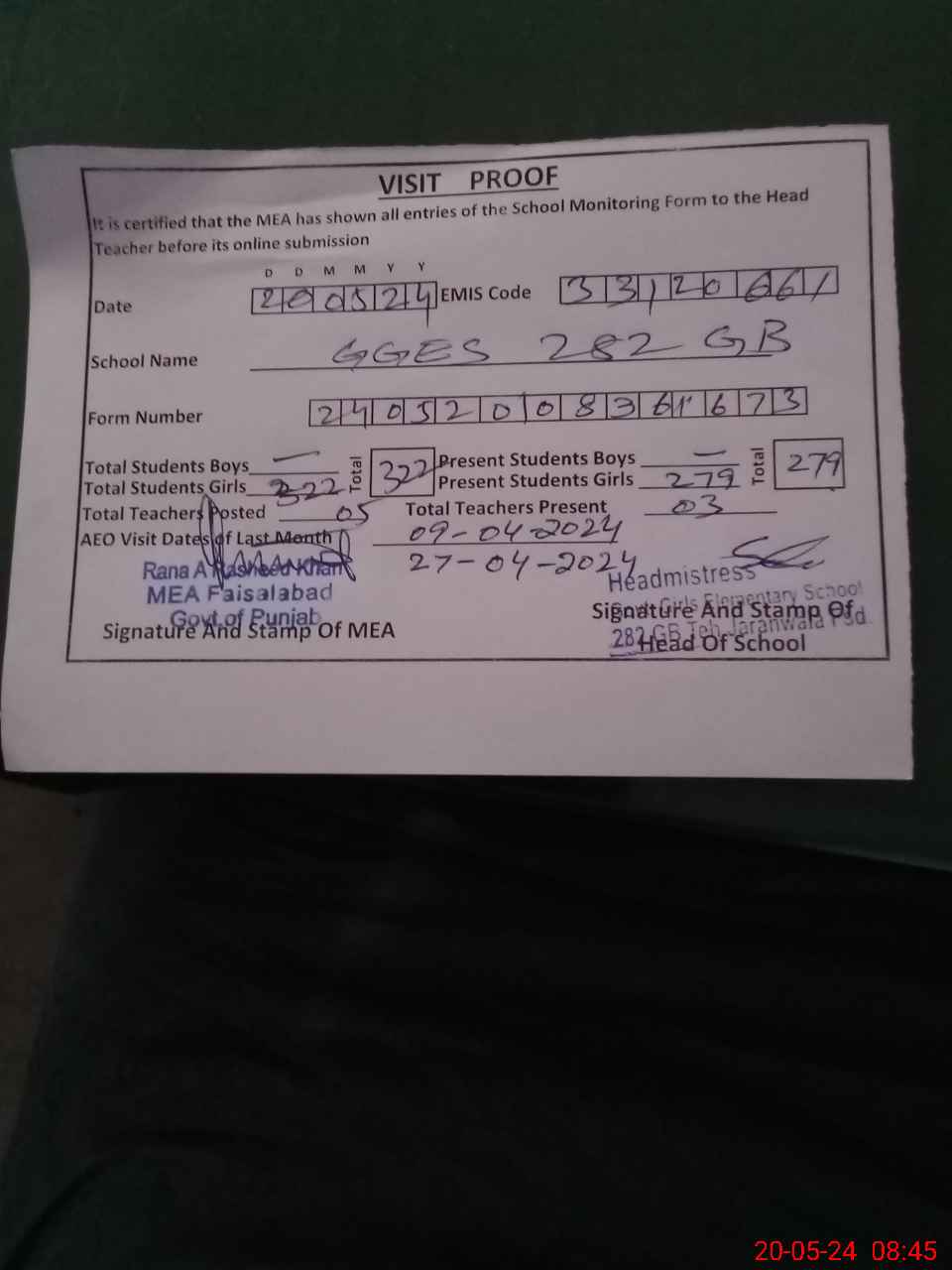 | EMIS Code: 33120661 | Name of School: GGES CHAK 282 GB SATIANA | |||