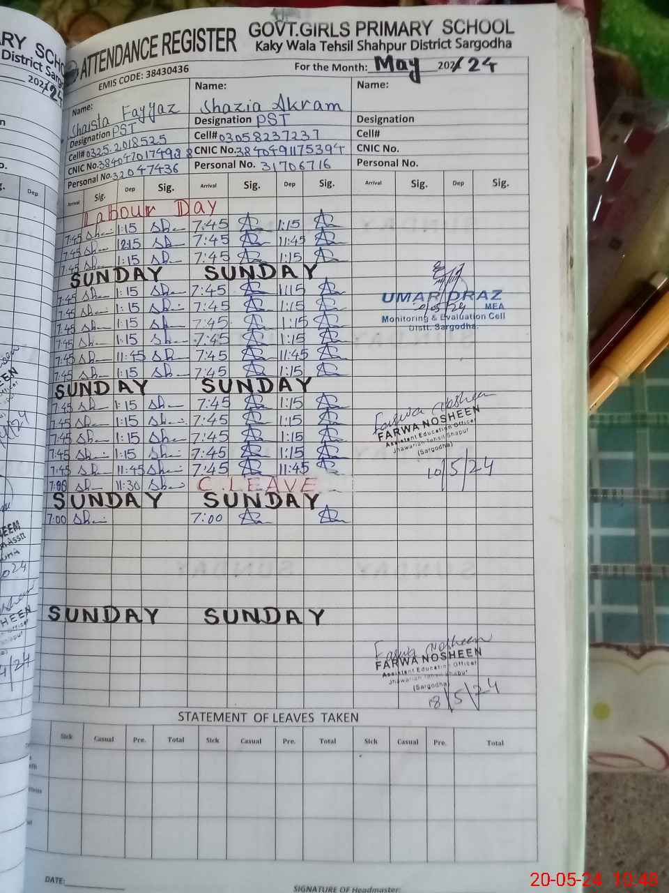 | Name: SH**** FA**** Designation: (School Headmaster's/Headmistress's) PST Phone/Cell Number: 03**** |
