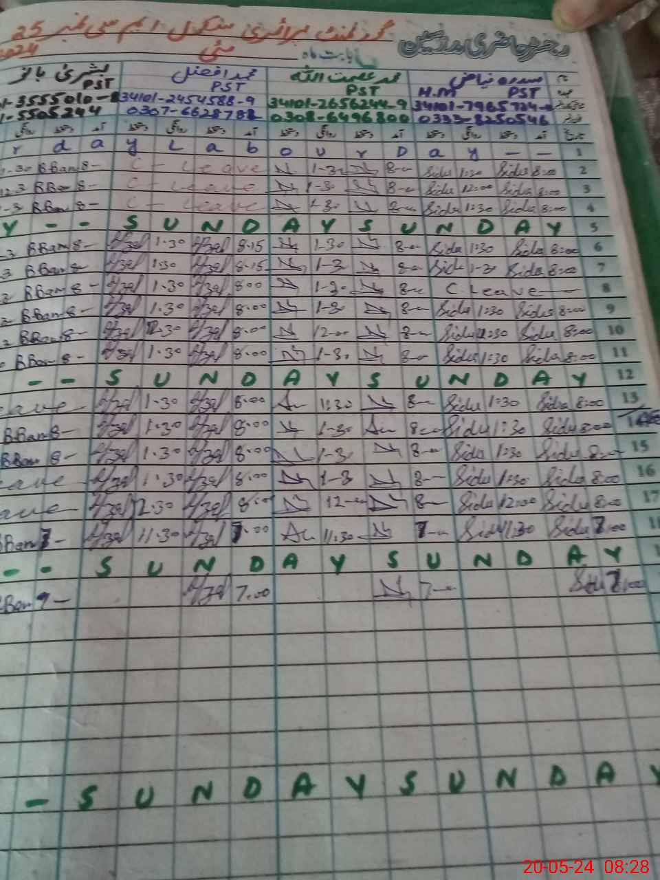 | CNIC | Full Name | Designation | R/C | Absence During Last Calender Month |