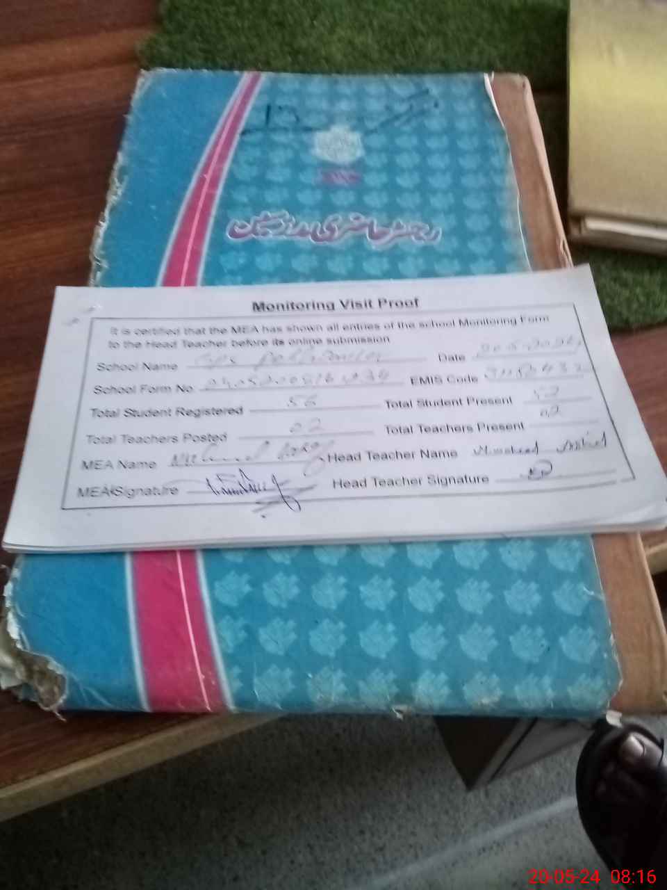 | Attendance Register | Head Teacher | MEA with School | Visit Proof |