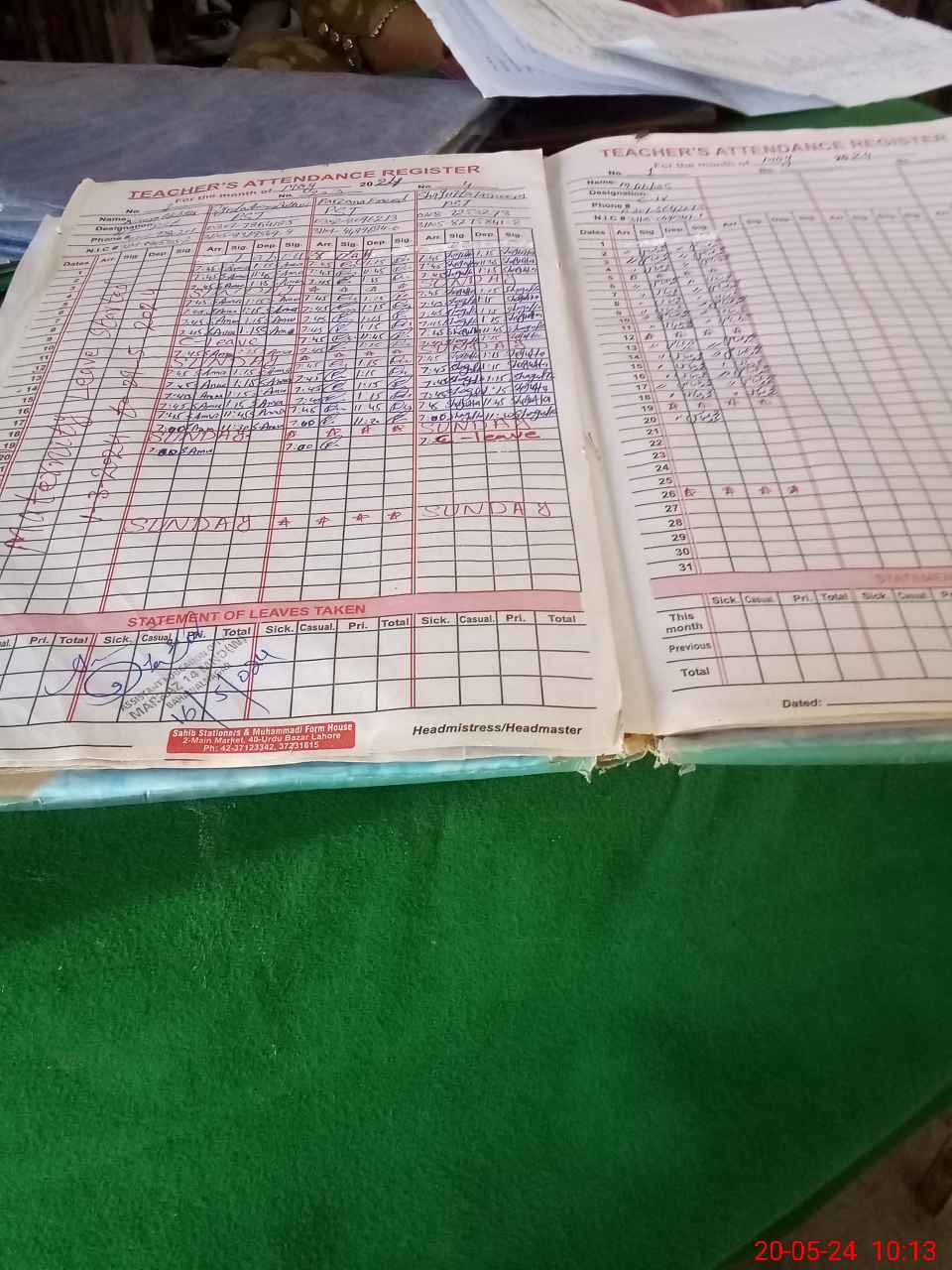 | CNIC | Full Name | Designation | R/C | Absence During Last Calender Month |