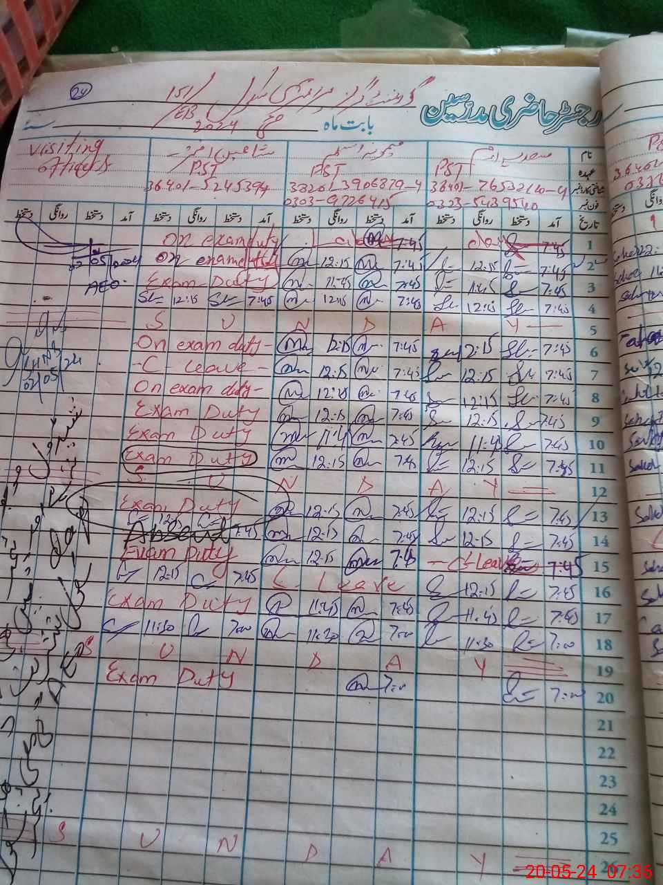 | 36**** | Sh**** Ak**** | 1 | 2 | 9 | 0 | 0 | 0 | 0 | 0 | 0 | 2 | Exam Duty | |