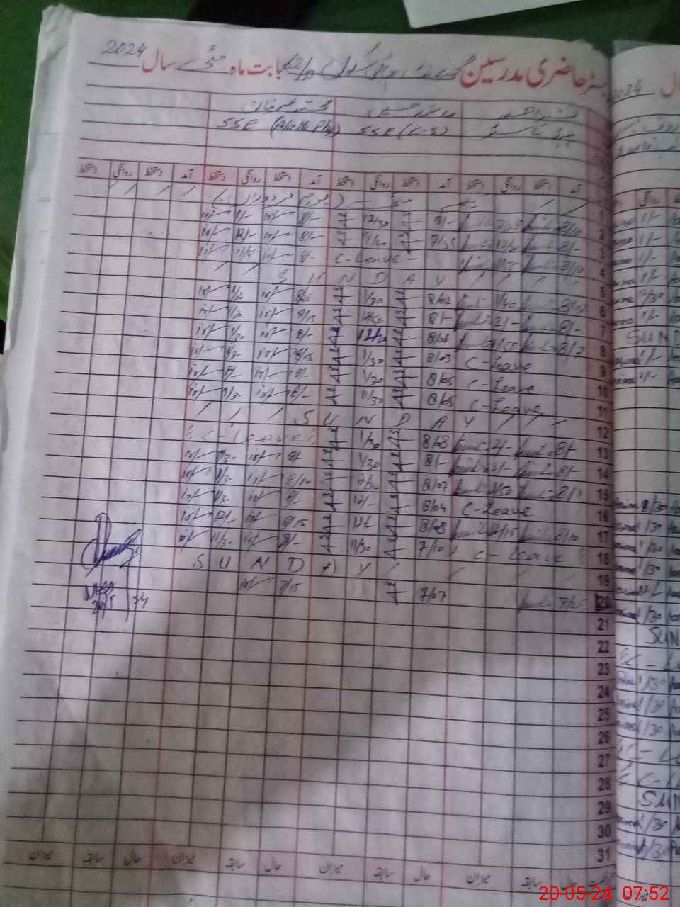 | CNIC | Full Name | Designation | R/C | Absence During Last Calender Month |