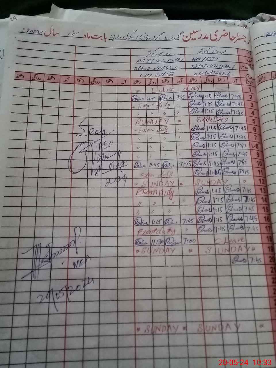 | Name: RU**** KO**** Designation: (School Headmaster's/Headmistress's) PST Phone/Cell Number: 03**** |