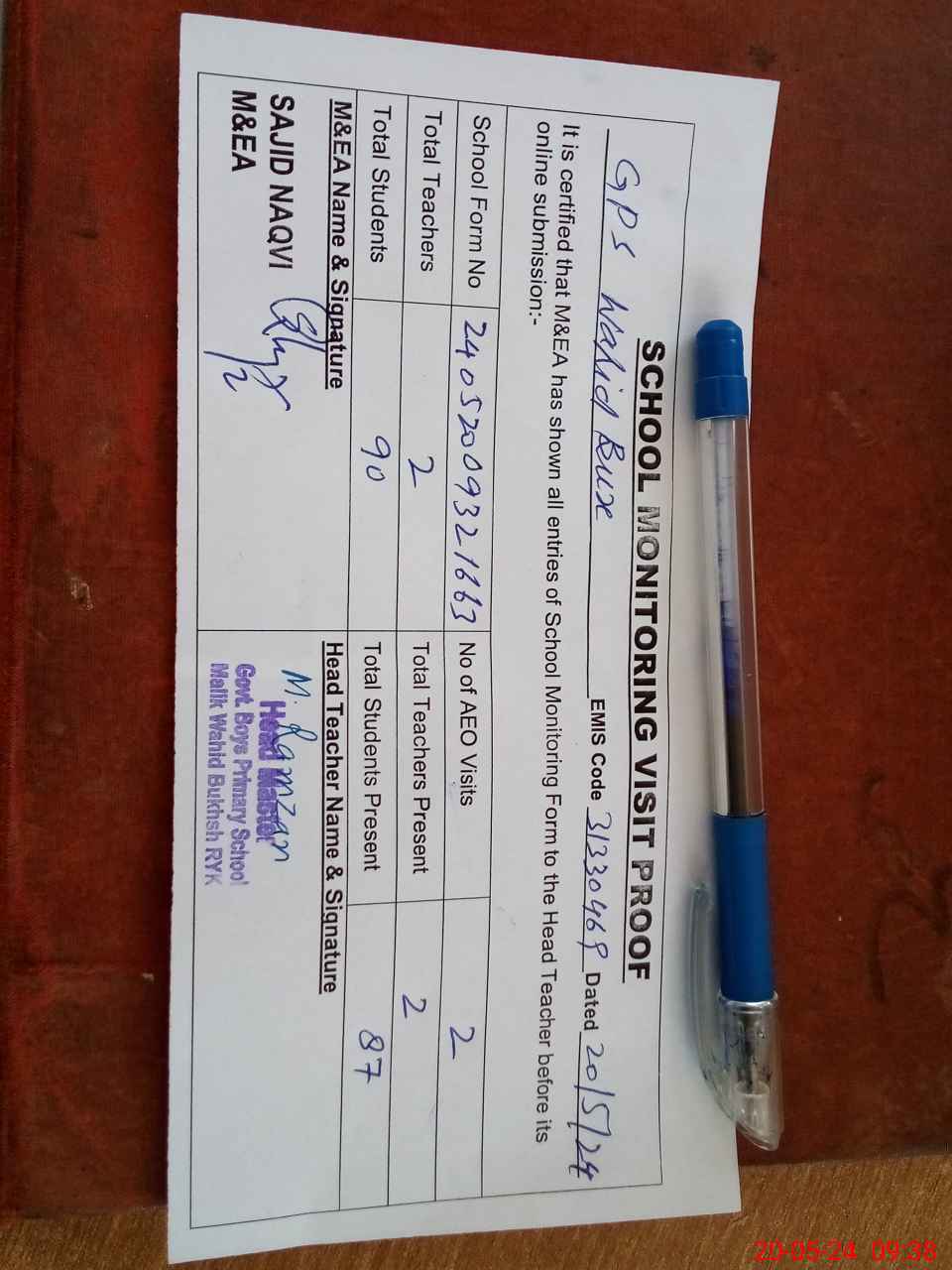| EMIS Code: 31330469 | Name of School: GPS WAHID BUX | |||