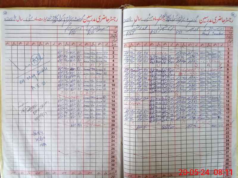 | CNIC | Full Name | Designation | R/C | Absence During Last Calender Month |