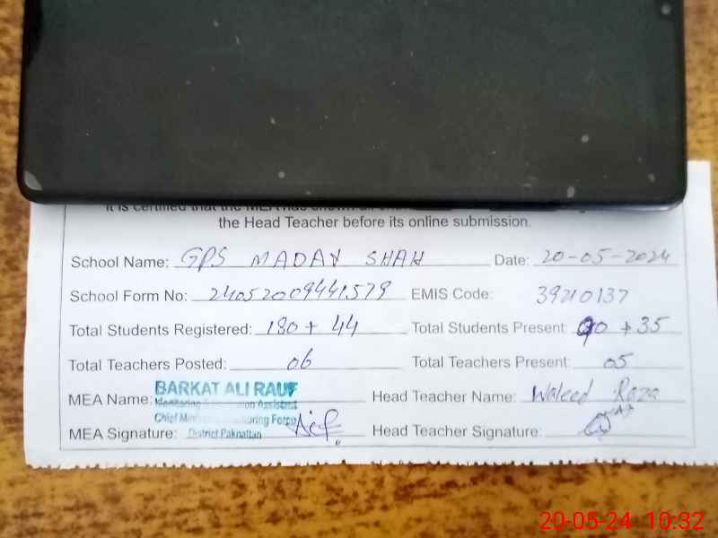 | EMIS Code: 39210137 | Name of School: GPS MADAY SHAH | |||