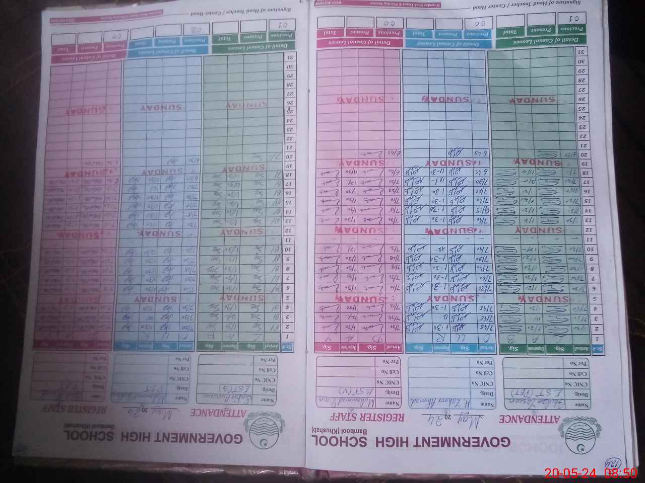 | CNIC | Full Name | Designation | R/C | Absence During Last Calender Month |