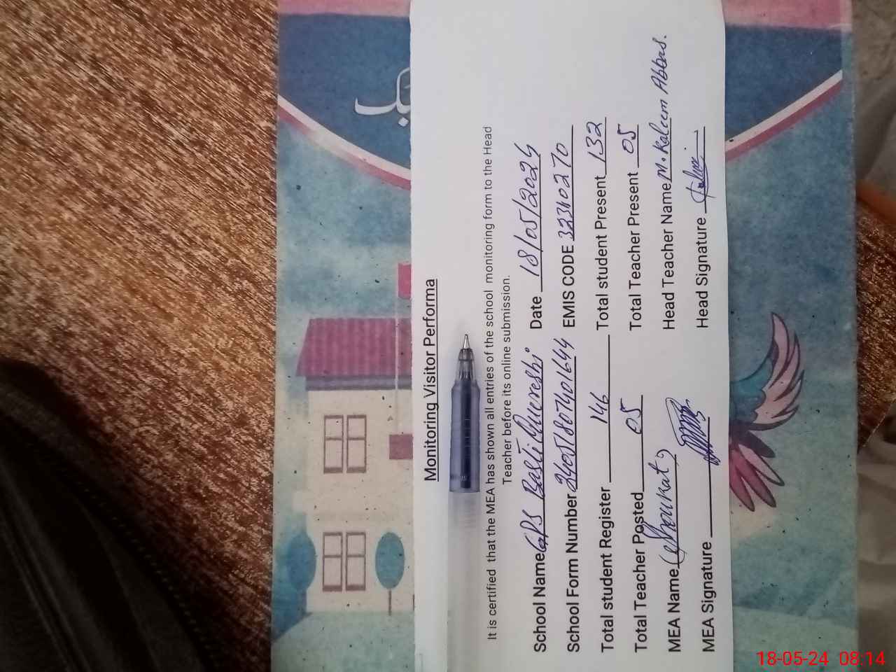 | Attendance Register | Head Teacher | MEA with School | Visit Proof |