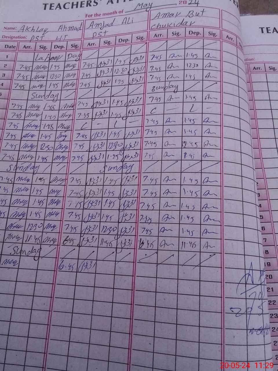 | 35**** | Am**** Bu**** | CHOKIDAR | Regular | 1 | 0 | 1 | 0 | 0 | 0 | 0 | 0 | 1 | Absent (Un-Authorized) |