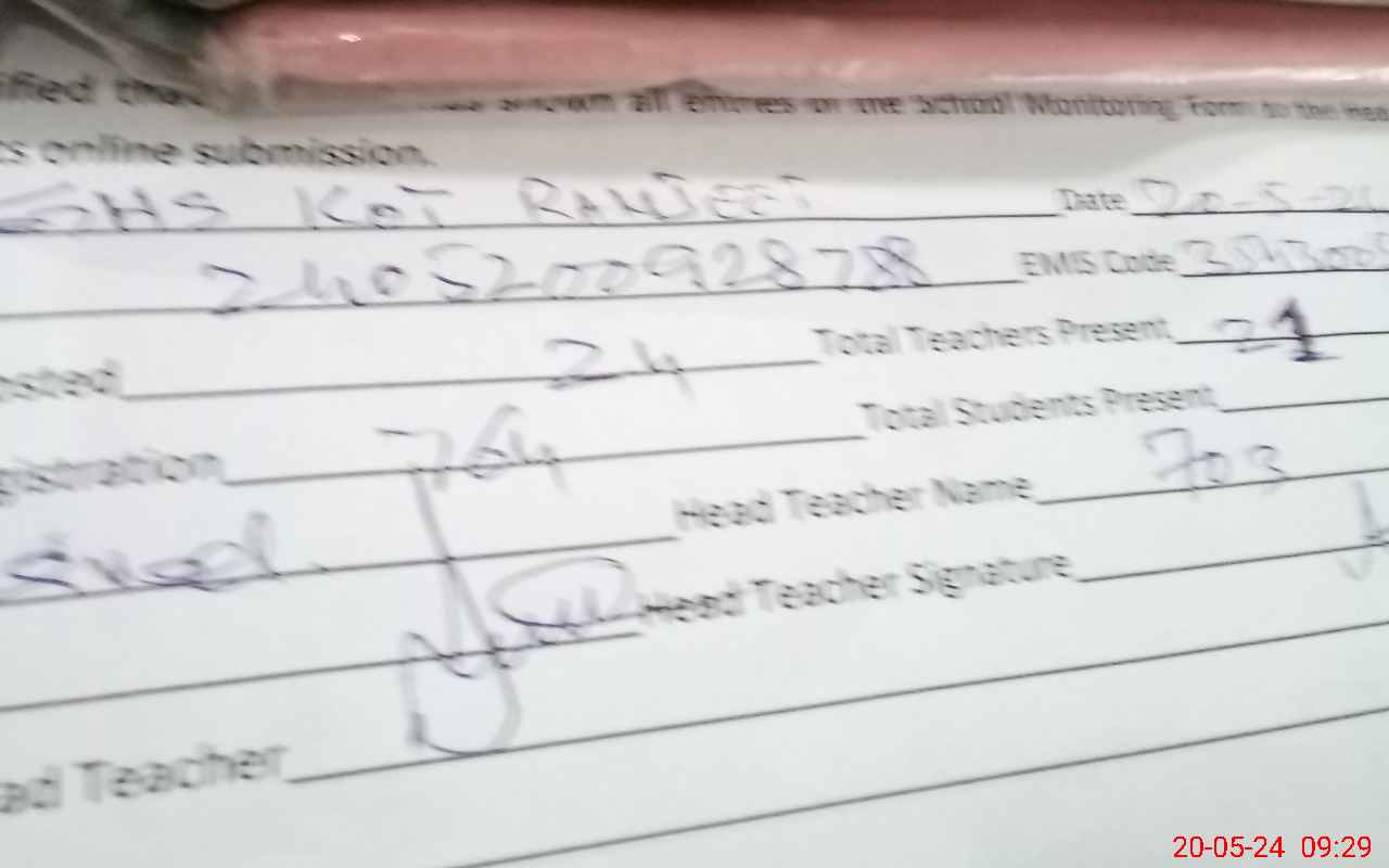 | EMIS Code: 35430052 | Name of School: GHS KOT RANJEET (SKP) | |||