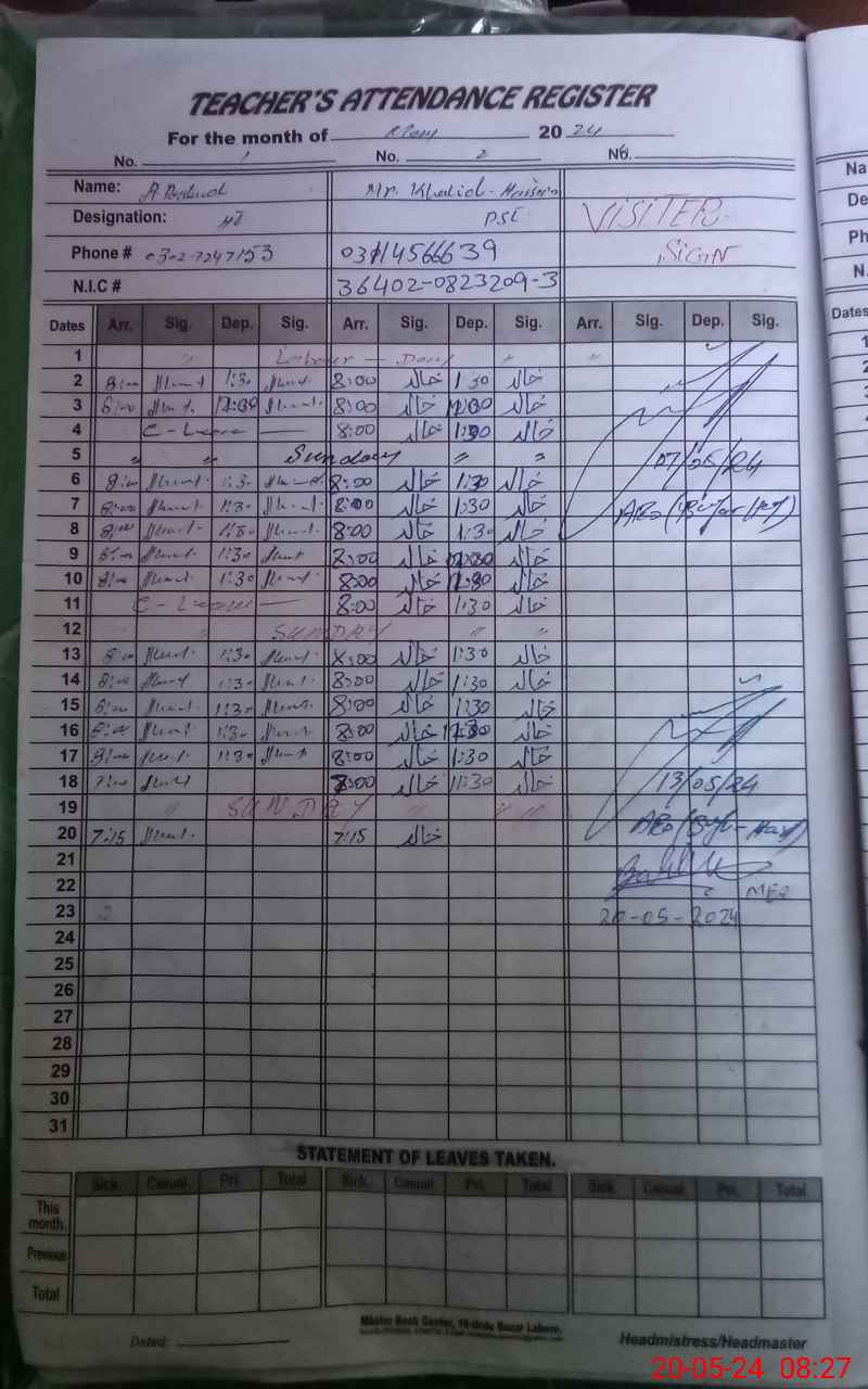 | Name: Kh**** Hu**** Designation: (School Headmaster's/Headmistress's) PST Phone/Cell Number: 03**** |