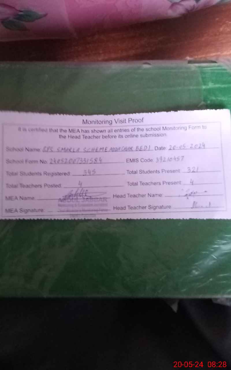 | Attendance Register | Head Teacher | MEA with School | Visit Proof |