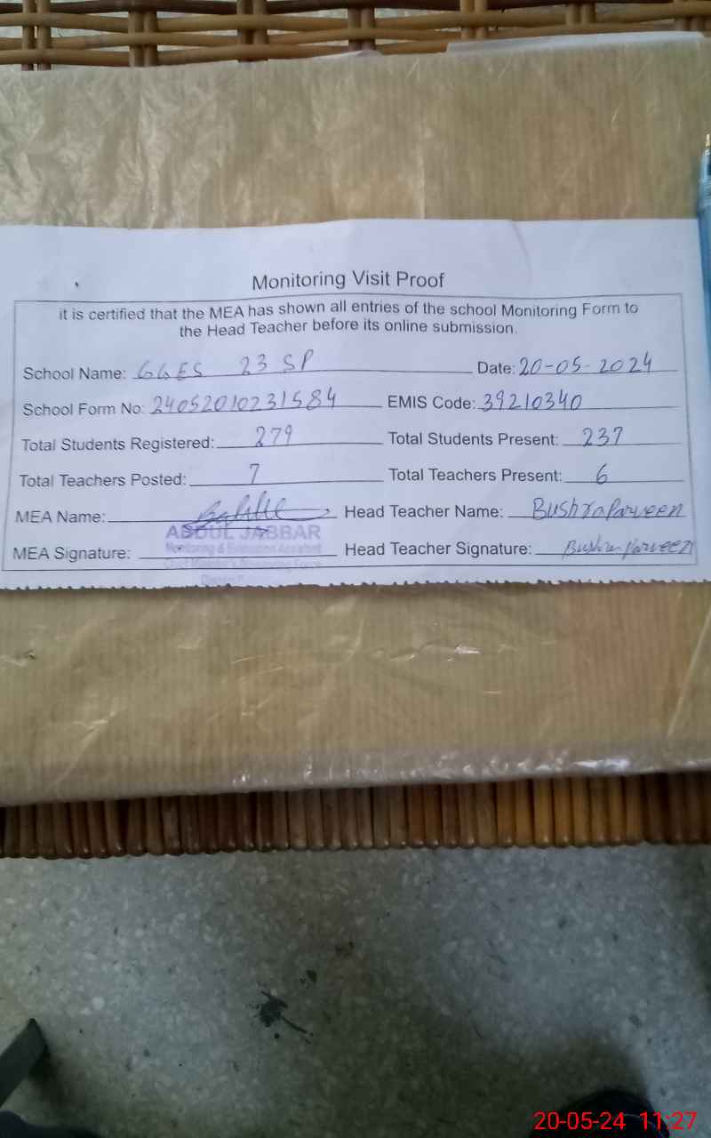 | Certified that this School was Inspected by the Undersigned MEA/DMO Today and the Information Stated Above is as Per Record. | |||||