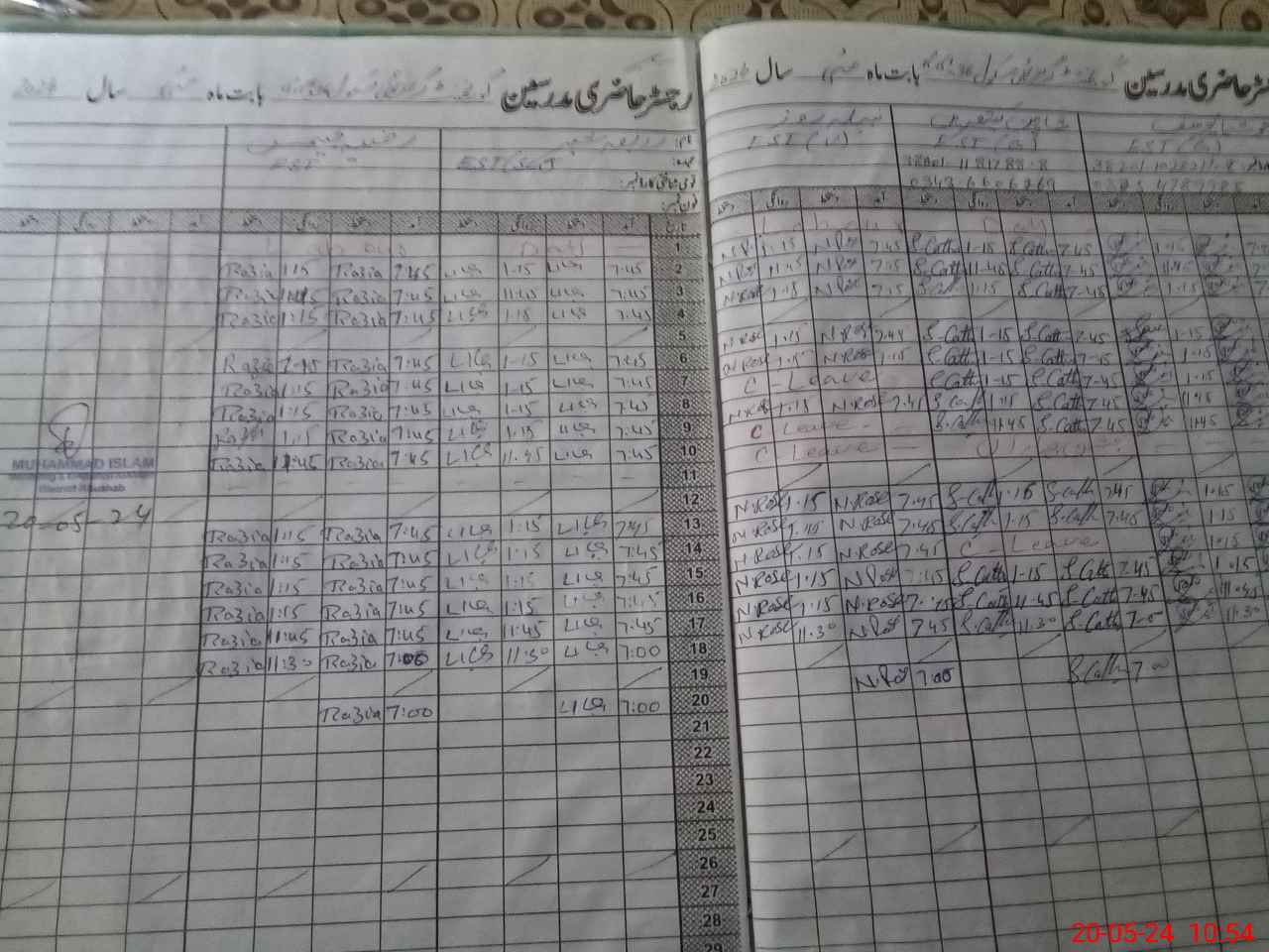 | CNIC | Full Name | Designation | R/C | Absence During Last Calender Month |