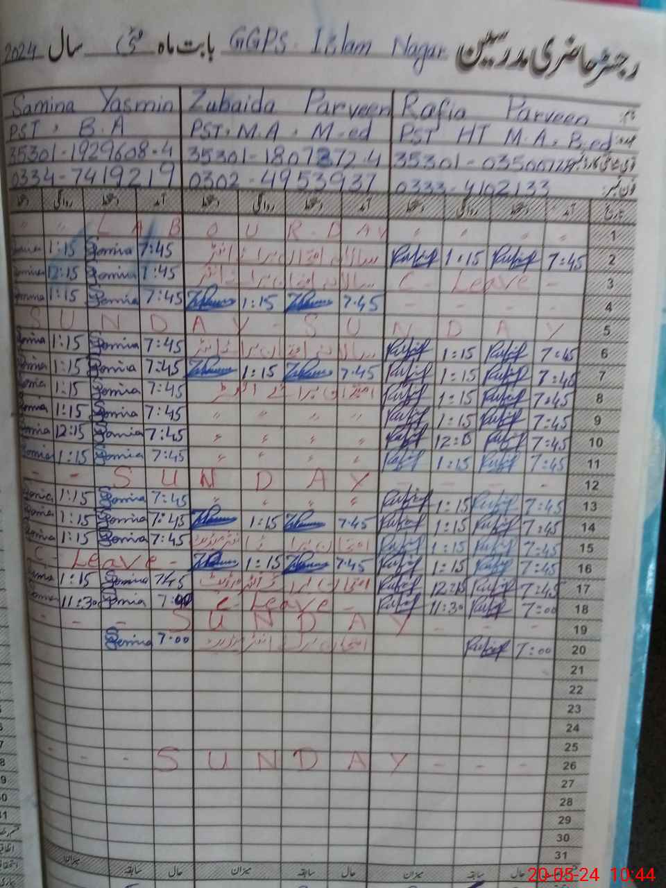 | 35**** | So**** Za**** Al**** | 1 | 1 | 0 | 0 | 0 | 0 | 0 | 0 | 0 | 0 | 0 | Exam Duty |