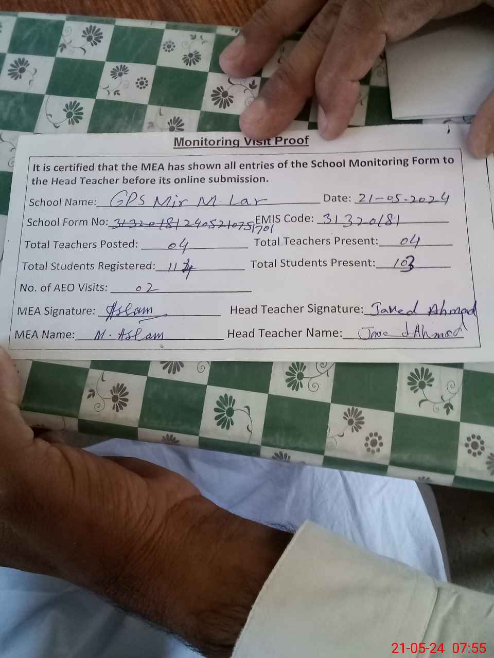 | EMIS Code: 31320181 | Name of School: GPS MIR MUHAMMAD LAR | |||