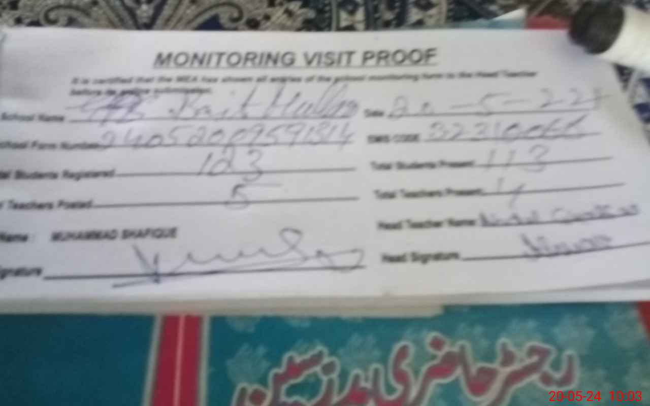 | EMIS Code: 32310066 | Name of School: GPS BAIT MULLAN WALI | |||